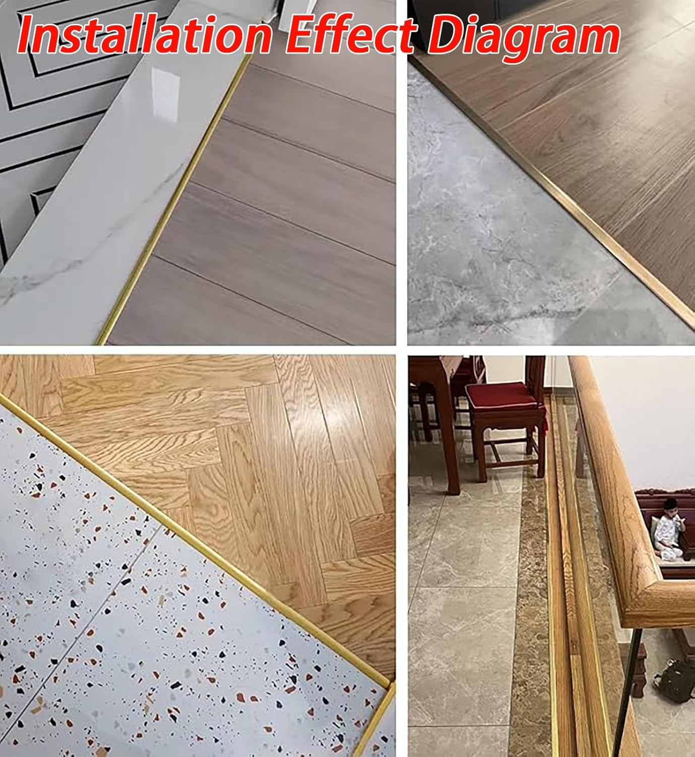 Floor Transition Strip Edge Strip Cover Trim Transition Bar Threshold Divider Strip rampOur edge reducer cover adapt to different décor styles, connecting floor gaps to you and your family!Packing List: - 1x Transition StripSpecifications: - Material: Brass- Length: 1 m (39 3/8")Function: - Metal material, and long-lasting.- Strong adhesion, not easy to fall off.- T-Shaped design, smooth transition.- Threshold bar s tripping or falling.- Easy to cut, install, clean and maintain.