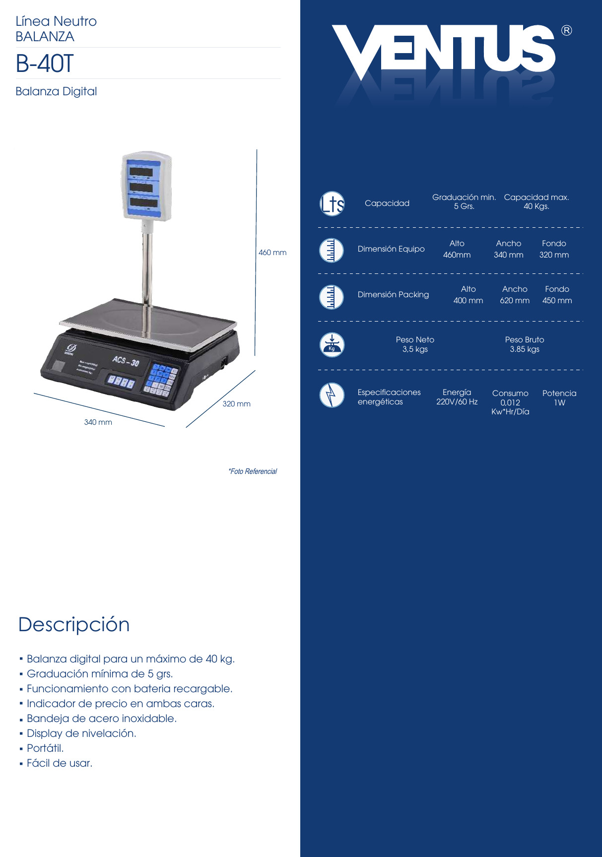 BALANZAS MARCA: VENTUS MODELO: B-40T